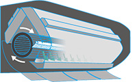 「白くまくん」MJシリーズは、室内機のパーツ随所にステンレスを採用し、熱交換器洗浄にはオールシーズン使える「凍結洗浄Light」を搭載。AJシリーズよりさらに清潔機能を充実させた、奥行コンパクトのスタンダードモデルです。