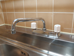ハンドル式からレバー式への変更も、同じツーホールタイプの蛇口であればこちらのように可能です。