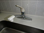 ツーホールタイプのキッチンの蛇口もTOTOエコシングル水栓『TKHG33E』に交換させていただきました。