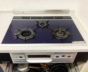 (交換前のガスコンロ 大阪ガス・110-R702)