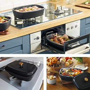 グリルオプションですが、リンナイ「ザ・ココット」とパロマ「ラ・クックグランポット」はコンロバーナーで使うこともできます。お鍋やフライパンのような使い方ができて便利です。