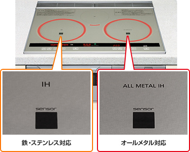 オールメタル対応ヒーターには、「ALL METAL IH」の表記があります。