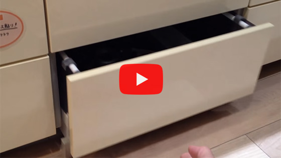 ソフトクロージング機構だから、引き出しが完全に閉じる手前でゆっくりと静かに閉まります。勢い良く閉めすぎて、「ガチャン」としまってしまうことを防ぎます。