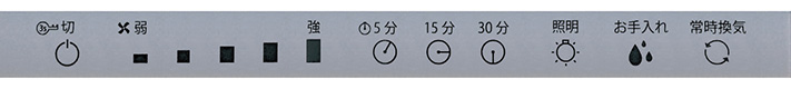 静電タッチスイッチ式の操作パネルは、シンプルなデザインで、凹凸がなくお手入れもしやすいです。風量は5段階で細かな設定が可能です。