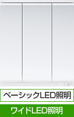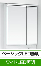 鏡の端から端までLED照明を搭載したワイドLED照明は、鏡まわり全体を均一に明るく照らします。端まで明かりが届くので2人並んでも使いやすく朝の洗面ラッシュ時でも便利!
