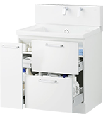 手前に水栓の向きを変えれば、洗髪や小さなお子様の手洗いにも便利。また、左右に水栓の向きを変えれば、衣類のちょっとしたこすり洗いに使えます。