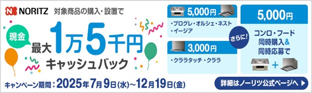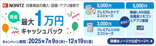 1.ノーリツ〈キャッシュバックキャンペーン2025~簡単ラク家事大作戦!第2弾~〉