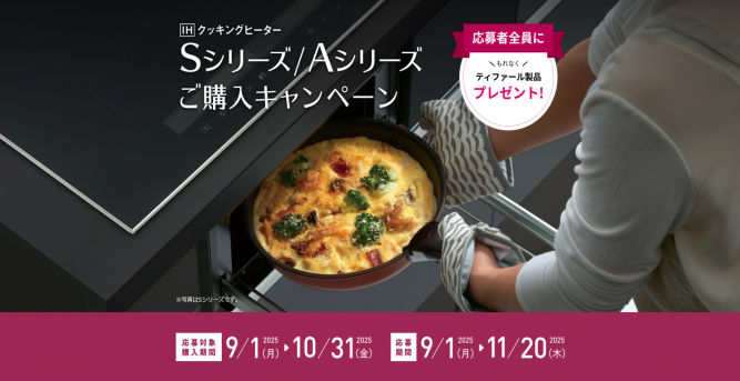 パナソニックIHクッキングヒーターの対象商品をご購入いただいた方に、もれなくティファール製品2点をプレゼント!