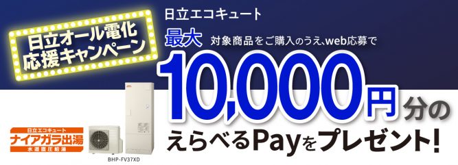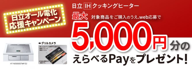 日立の対象商品をご購入いただいた方に、もれなくえらべるPayをプレゼント!