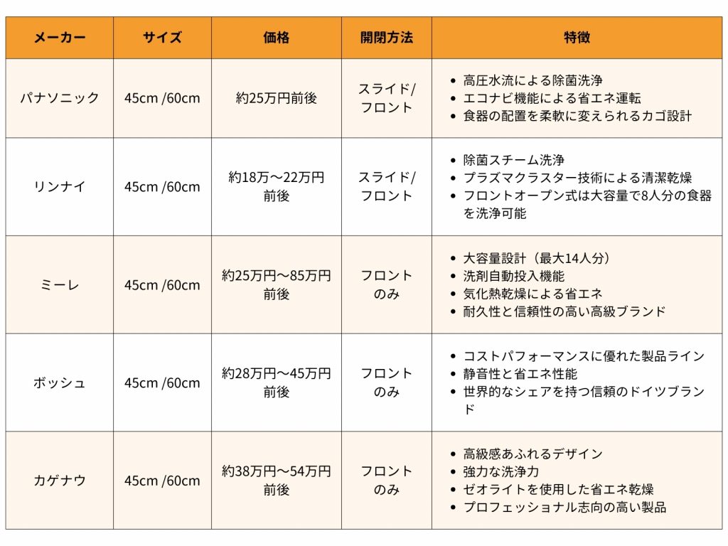食洗機を選ぶ際には、各メーカーの特徴をあらかじめ比べておくと安心です。