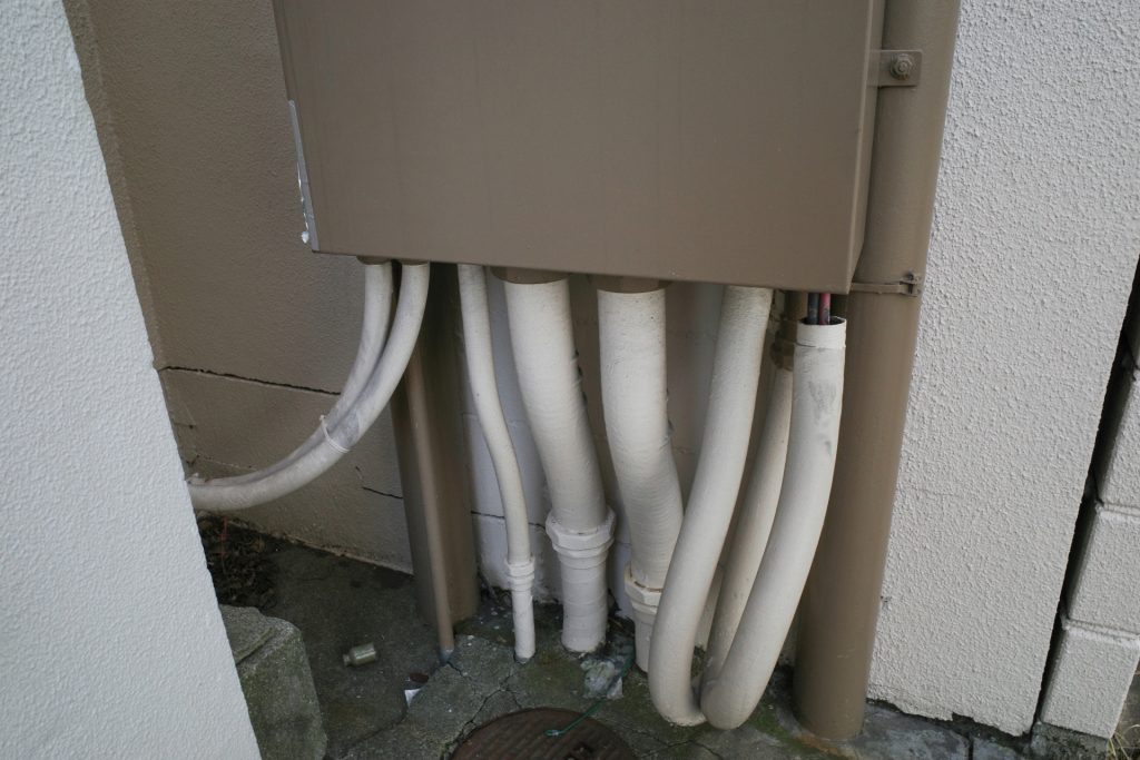 屋外にあるエコキュートは、配管が露出していることがあります。露出した配管にいたずらをされたり、動物や外部衝撃によって傷がついたりするケースは少ありません。