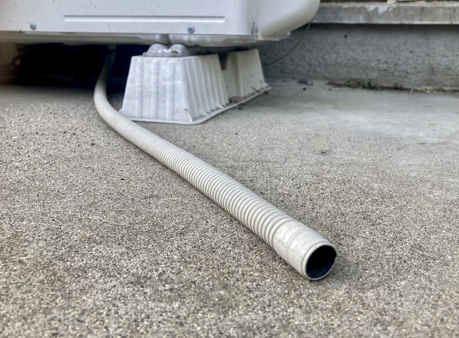 排水ホースに汚れが溜まると、ホースがつまってしまいます。排水されるべき水が室外機の内部に溜まった結果、水漏れが起きているのかもしれません。