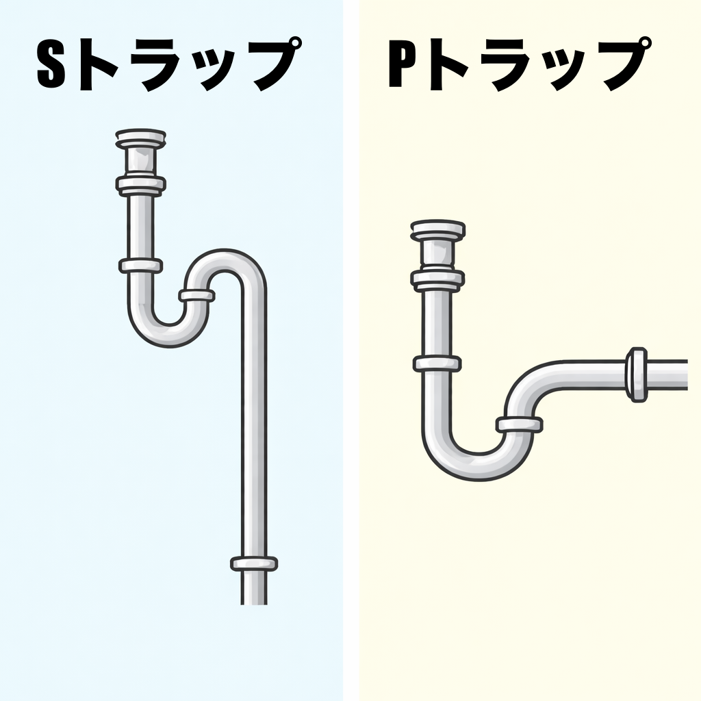 洗面台の排水管には「Sトラップ」や「Pトラップ」と呼ばれる構造が使われています。