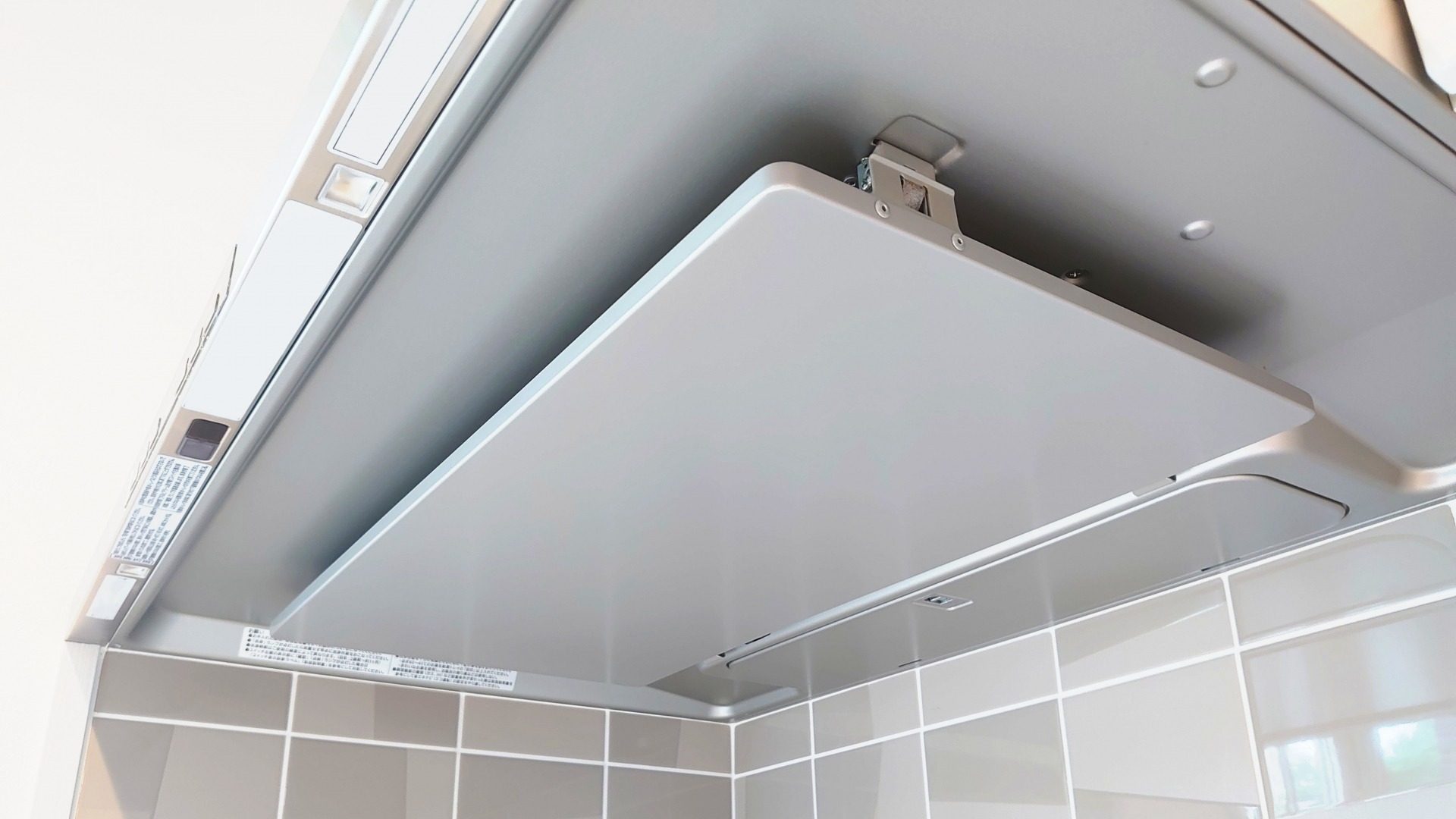 フラット型レンジフードのもっとも魅力的な部分は、見た目と掃除のしやすさを両立できる点 です。天井や吊り戸棚とフラットにラインがそろい、キッチン空間がすっきり見えるため、インテリア性を重視する方から選ばれています。