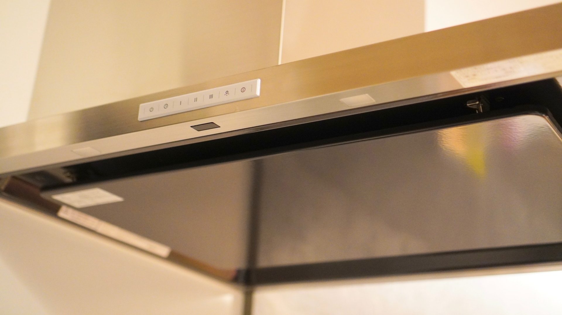 スリム型レンジフードの最大の魅力は、高い吸引力と機能性にあります。レンジフード内部に整流板や強力ファンが組み込まれ、煙や油煙を効率よく集めて排気する設計が特徴です。