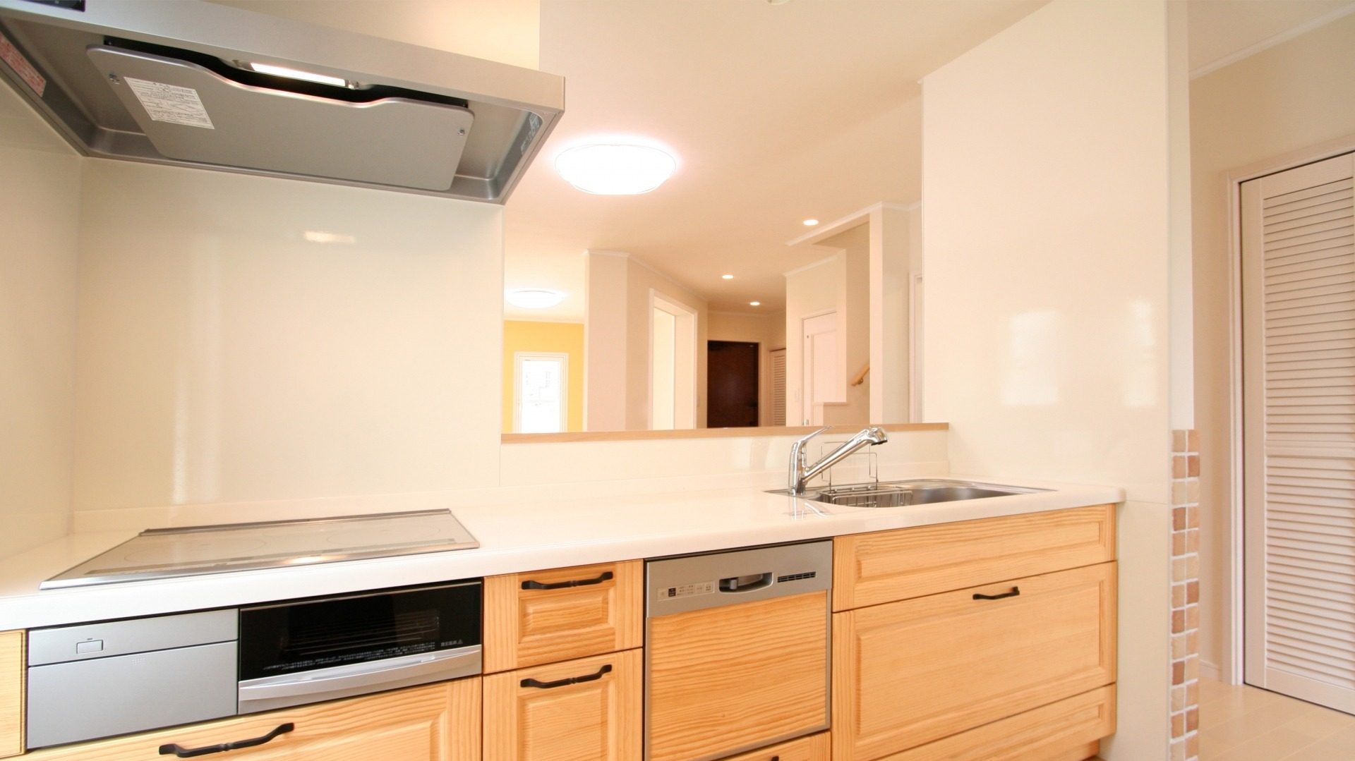フラット型の最大の魅力は、キッチン全体がすっきり見えるデザイン性の高さです。天井や吊り戸棚とラインがそろいやすく、オープンキッチンでも空間を圧迫しにくい点が、大きなメリットと言えます。