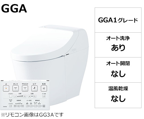なかでも 「GGAグレード」 はコストを抑えつつ基本機能を備えているため、初めてのトイレ交換にも安心です。