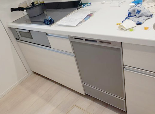 「先日リフォーム済の中古マンションを購入しましたが、食洗機がなく新規取り付けを依頼しました。 見積り担当の井垣さまに何度も何度も不明点をメールしてしまいましたが、その度に細かい不安点についても納得いくまで説明して下さいました。 特にうちのキッチンにあうパネルや引き出しについても考え提案して下さり、とても素敵な仕上がりになりました。本当にありがとうございました。 スケジュールは、こちらの最初の希望日程では無理でしたが、提案頂いた日付で施行できたので、良かったです。 その後の担当の中川様からはマンションの管理会社への対応で工程表や製品図面を頂いたりと大変助かりました。 コインパーキングが遠くあの大きな食洗機を荷台で運ぶのは大変だったと思うのですが『大丈夫ですよ』と言って下さり、優しさを感じました。 最初の見積もりから、スケジュール、実際に取り付け、そして出来上がりまで全てに大満足でした。 ネットからの申し込みなので人の手が入らないように見え最初は不安でしたが、メールで細かくやりとりが出来たので、逆に不安点等確認を随時出来良かったです。周りにも進めていきたいです。」