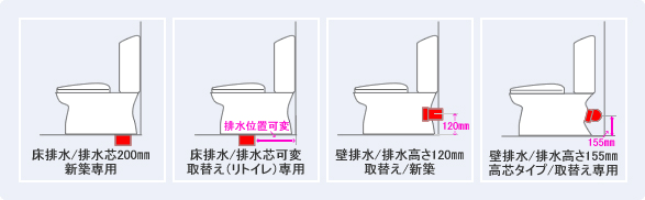 | 排水芯 床リモデル | 305~540mm | 305~540mm | 305~470mm | 200~550mm |