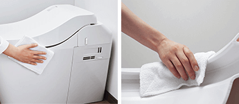便器のフチ裏がない設計のため、簡単に拭きとりができます。